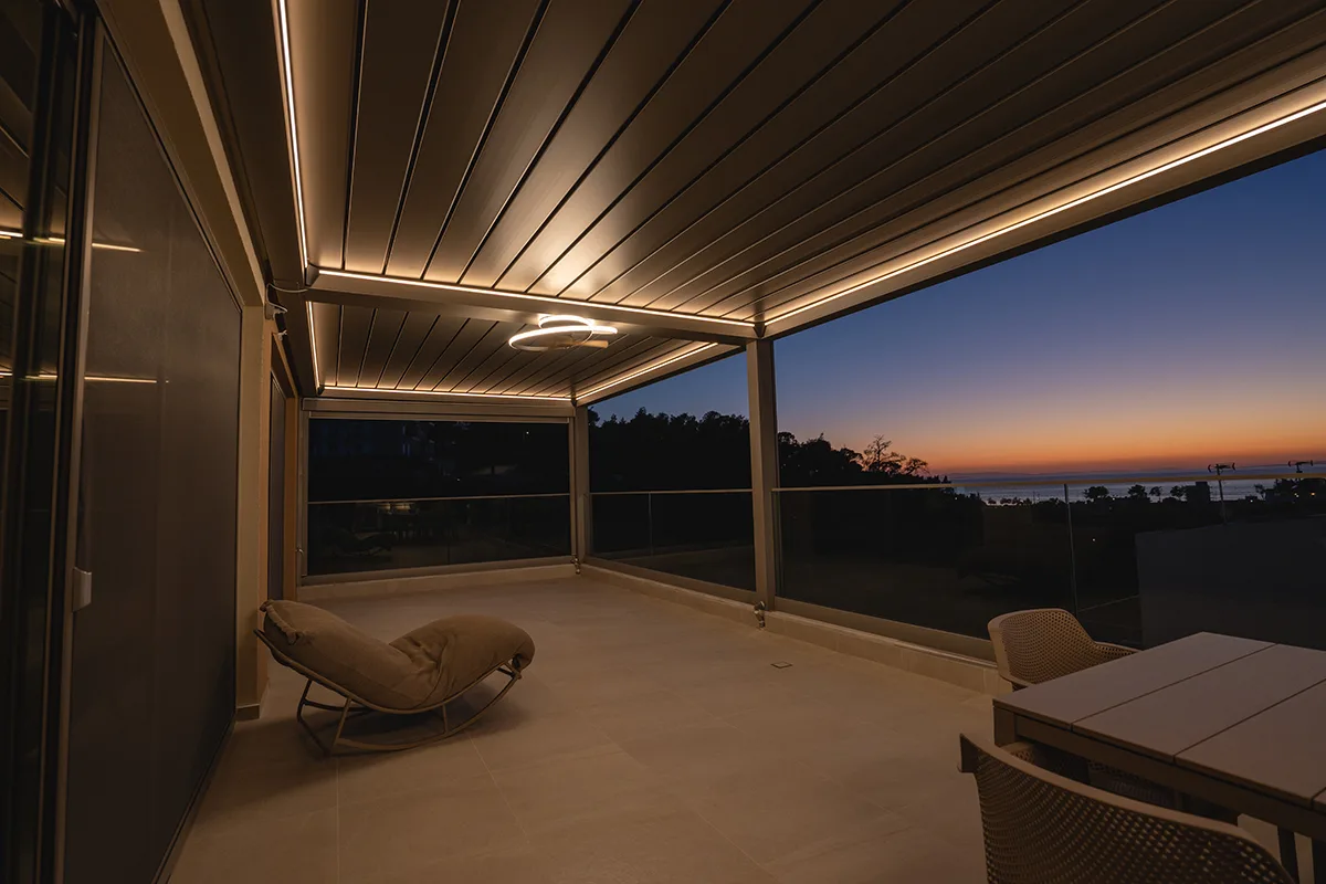 Ένα πλήρως αναδιπλούμενο, οριζόντιο σύστημα που προσφέρει την ευκαιρία να περάσετε στιγμές χαλάρωσης όλη την ημέρα, εκμεταλλευόμενοι τις καιρικές συνθήκες, δημιουργώντας έτσι το επιθυμητό μικροκλίμα.