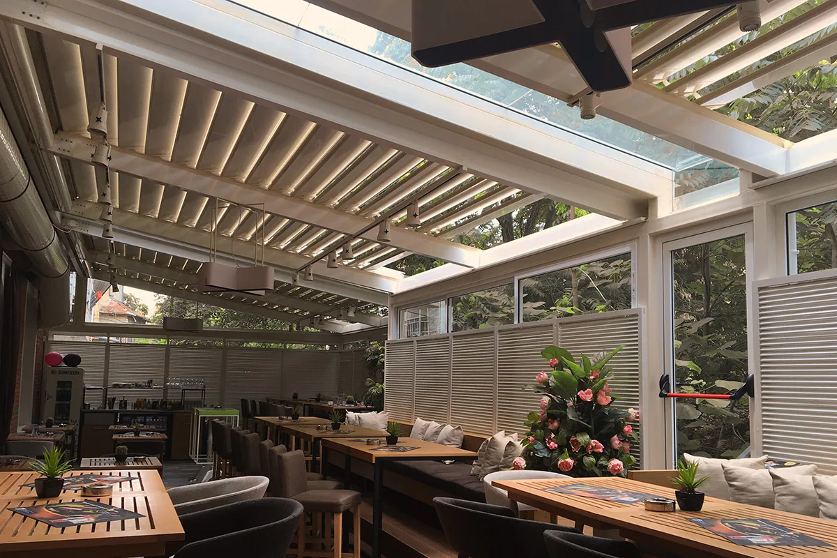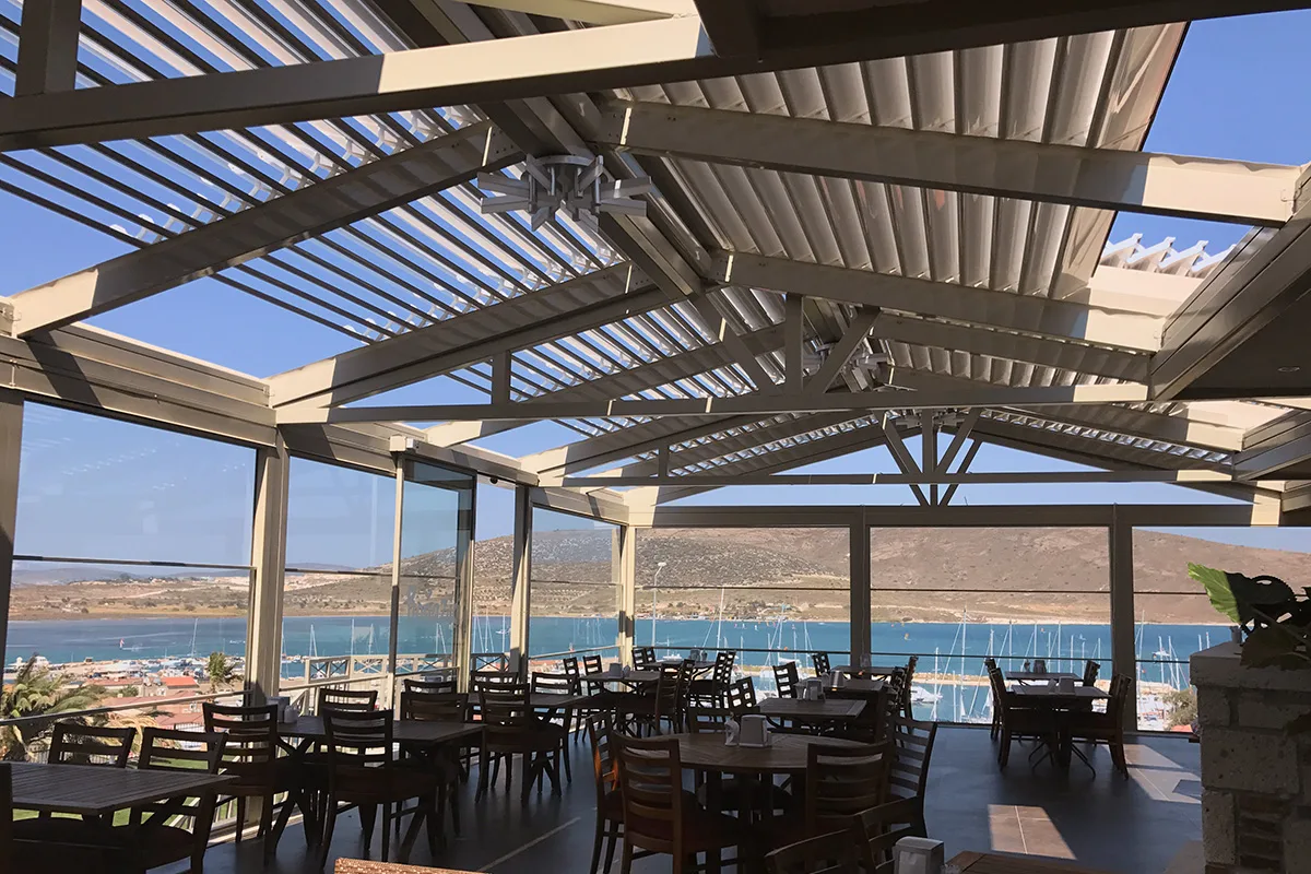 Η Persa διατηρεί τα βιοκλιματικά χαρακτηριστικά της ρυθμίζοντας το φως του ήλιου, τον αερισμό και τη θερμοκρασία. Με ελάχιστη απαιτούμενη κλίση 5%, η Persa παραμένει μια ευέλικτη και δημοφιλής επιλογή, προσφέροντας προσαρμόσιμη άνεση σε εξωτερικούς χώρους και υψηλή αισθητική.